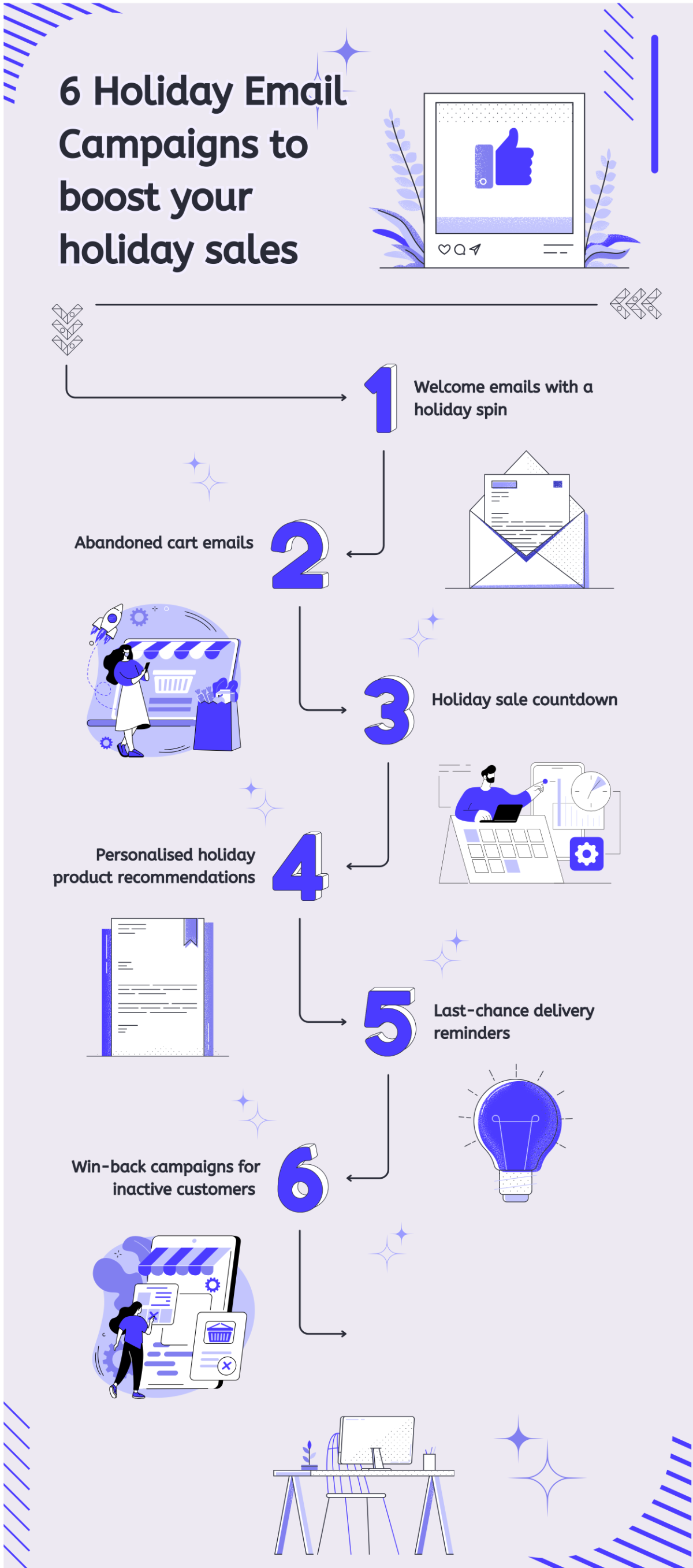 With these six email campaigns, you’ll be set to stand out in your customers’ inboxes and make the most of the busy season. From abandoned cart emails to last-minute delivery reminders, each campaign helps you capture more sales and build stronger customer relationships.